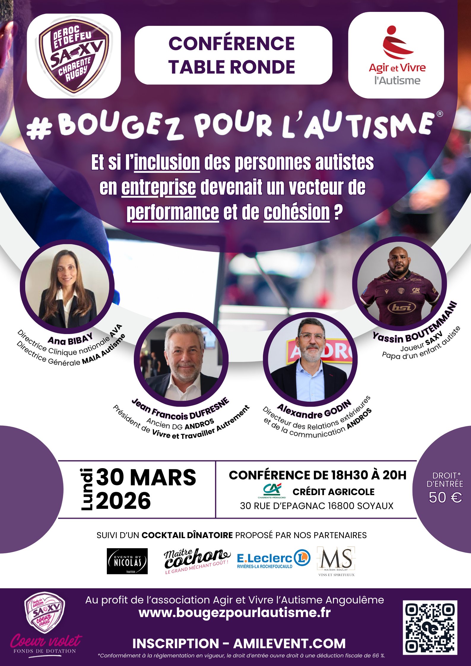 Organisé par Agir et Vivre l’Autisme Charente et le SA XVe Charente Rugby