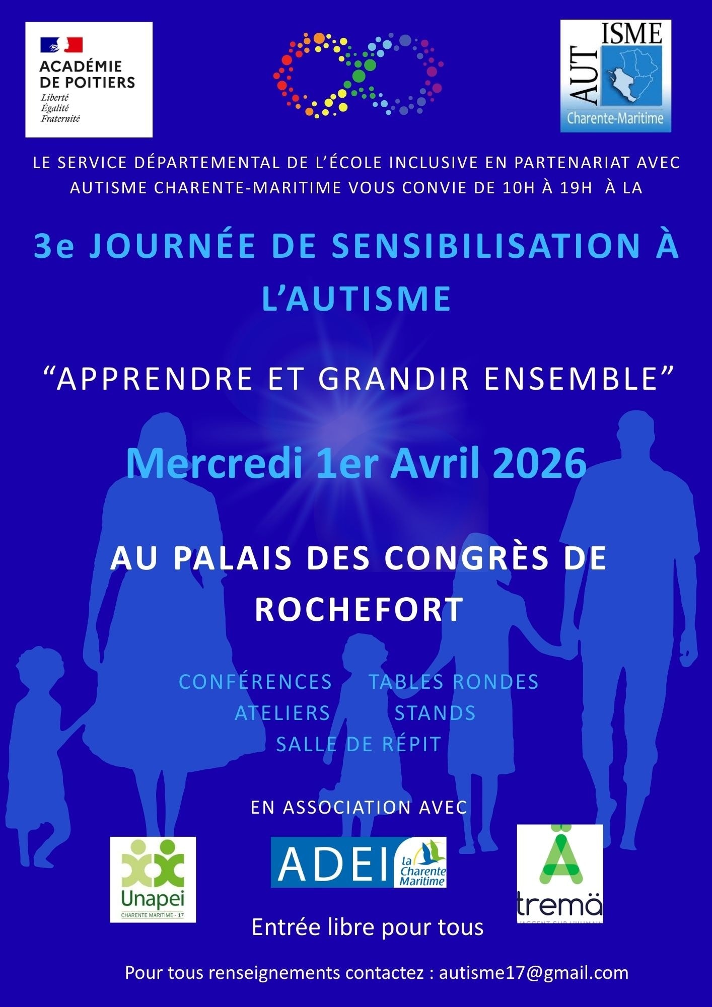 Organisée par le Service départemental de l’École inclusive en partenariat avec Autisme Charente-Maritime, avec la participation de l’Unapei Charente-Maritime, l’ADEI et Tremä