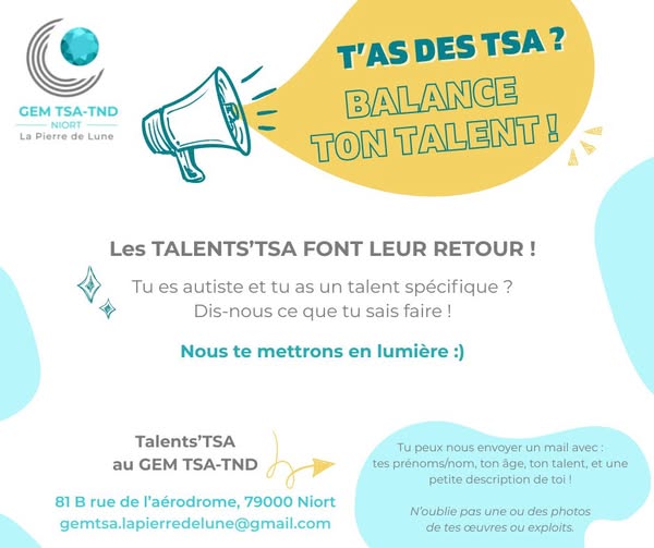 Localisation : GEM TSA Nacre en Ciel – 21 place Philippe Le Bel 86000 Poitiers