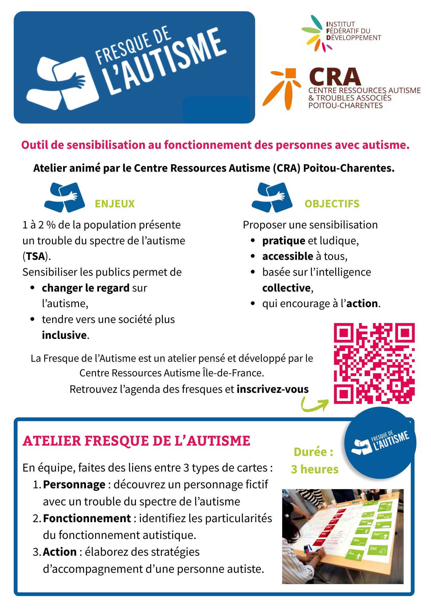 Le CRA Poitou-Charentes propose des ateliers Fresque de l’Autisme pour sensibiliser au trouble du spectre de l’autisme.